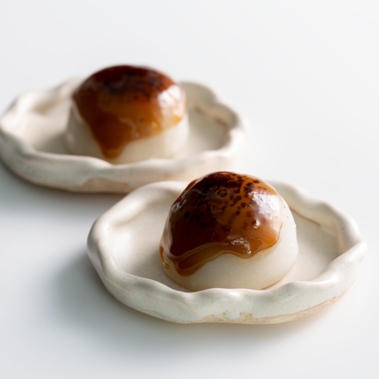 「みたらし大福」は、もっちり弾力のあるお餅で、甘じょっぱいみたらしタレとつぶ餡を包みました。