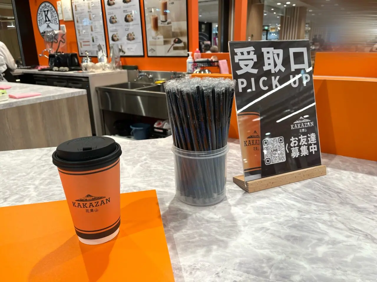 注文したドリンクは、カウンターの「受取口(PICK UP)」から受け取ります。