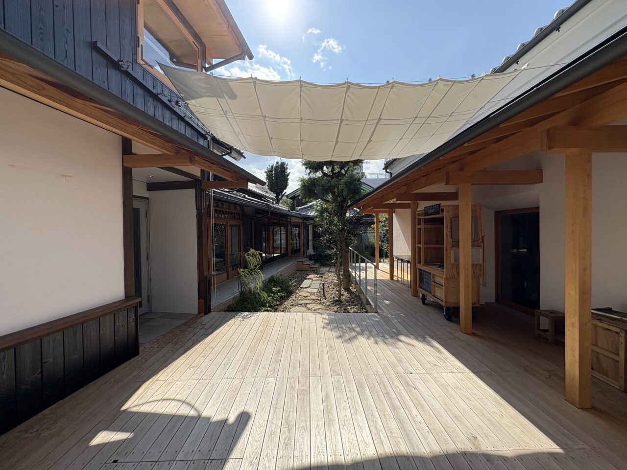 「燈森」は、歴史ある趣はそのままに、現代の感性を取り入れた複合施設です。旧徳永家住宅をリノベーションした主屋からは、外の階段で文禄堤下のガレージ店舗へとつながっています。