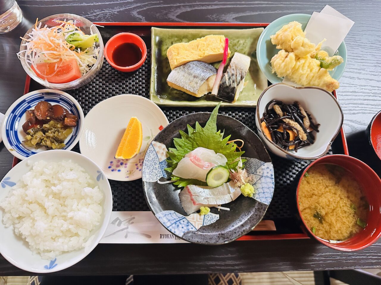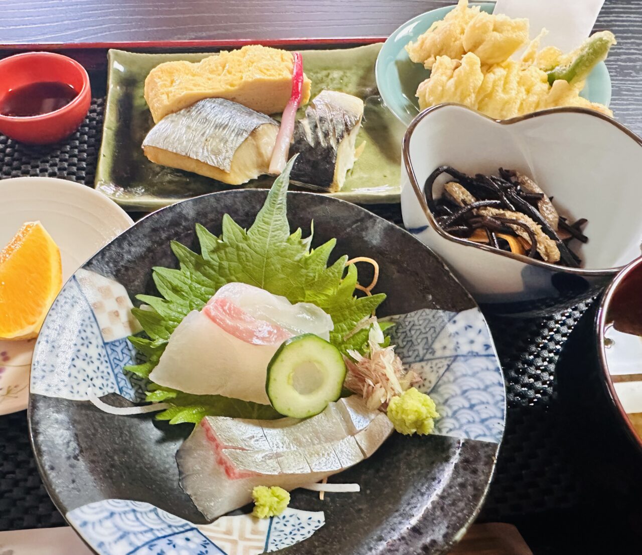 サラダやお造り・焼き魚・鶏天などすべて新鮮で美味しかったです。種類豊富でこれだけついて1200円というのも嬉しいです。