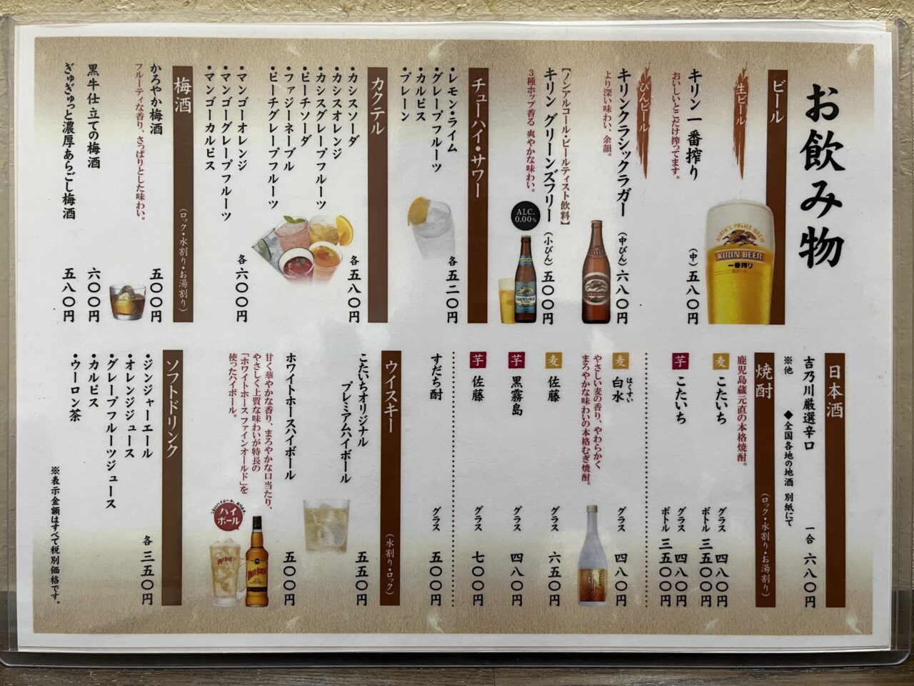 ビールやサワー、焼酎など、幅広いドリンクメニューもそろっています。