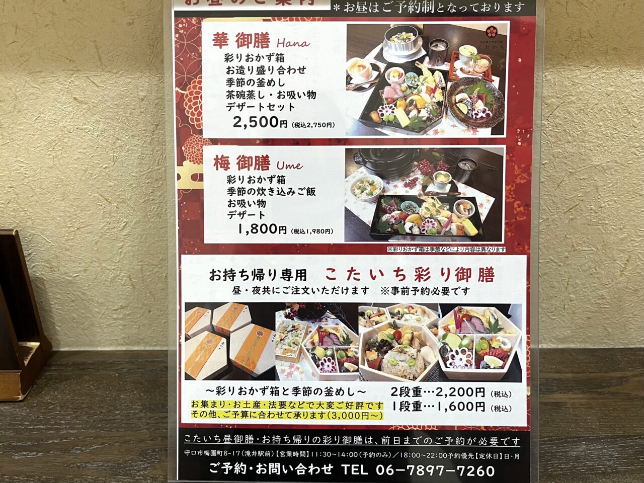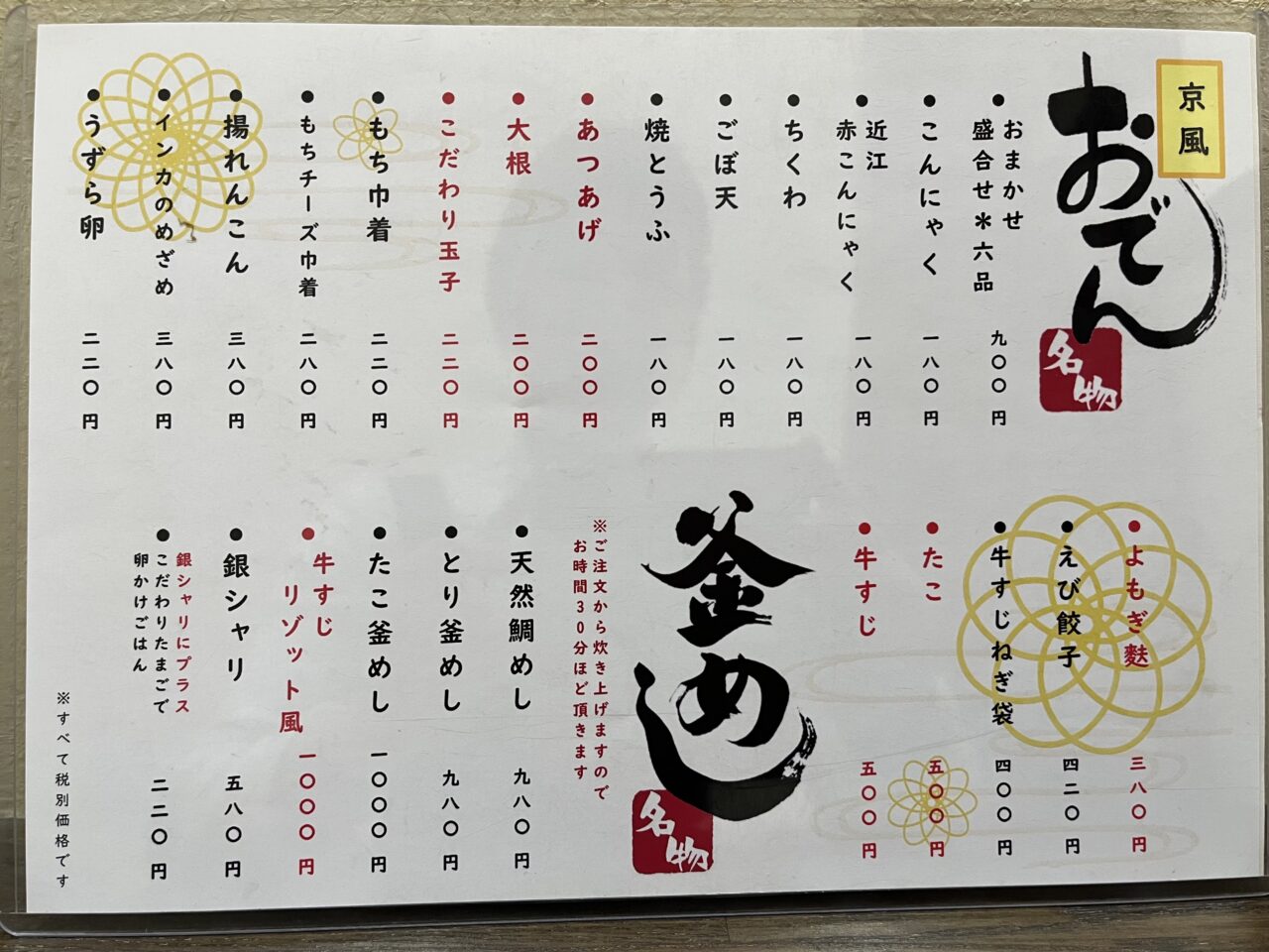夜は京風おでんや釜めしなど、こたいちならではの和食が楽しめます。