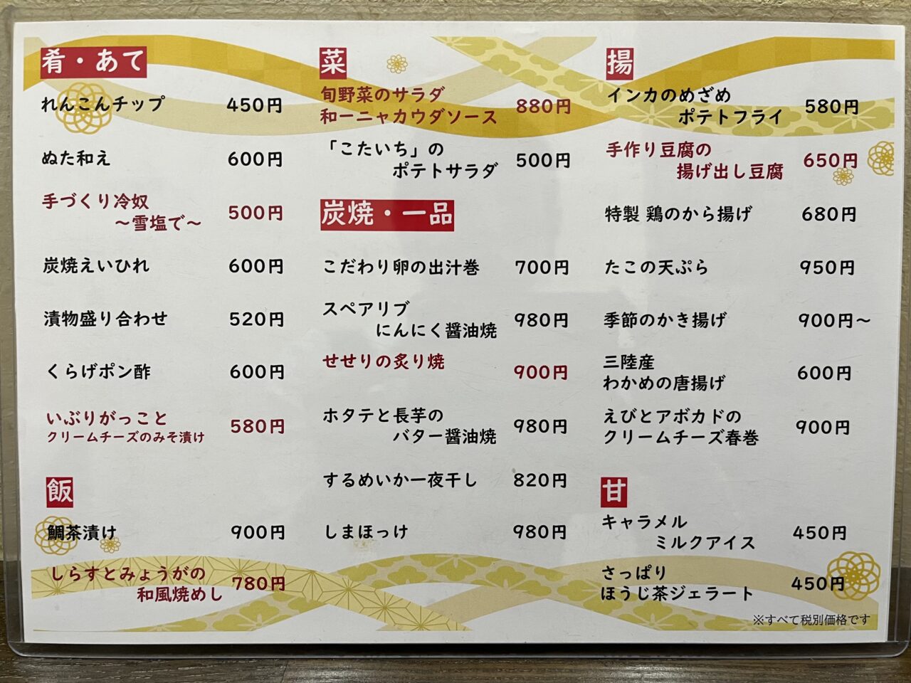 一品料理も豊富で、さまざまな和のメニューが並んでいます。