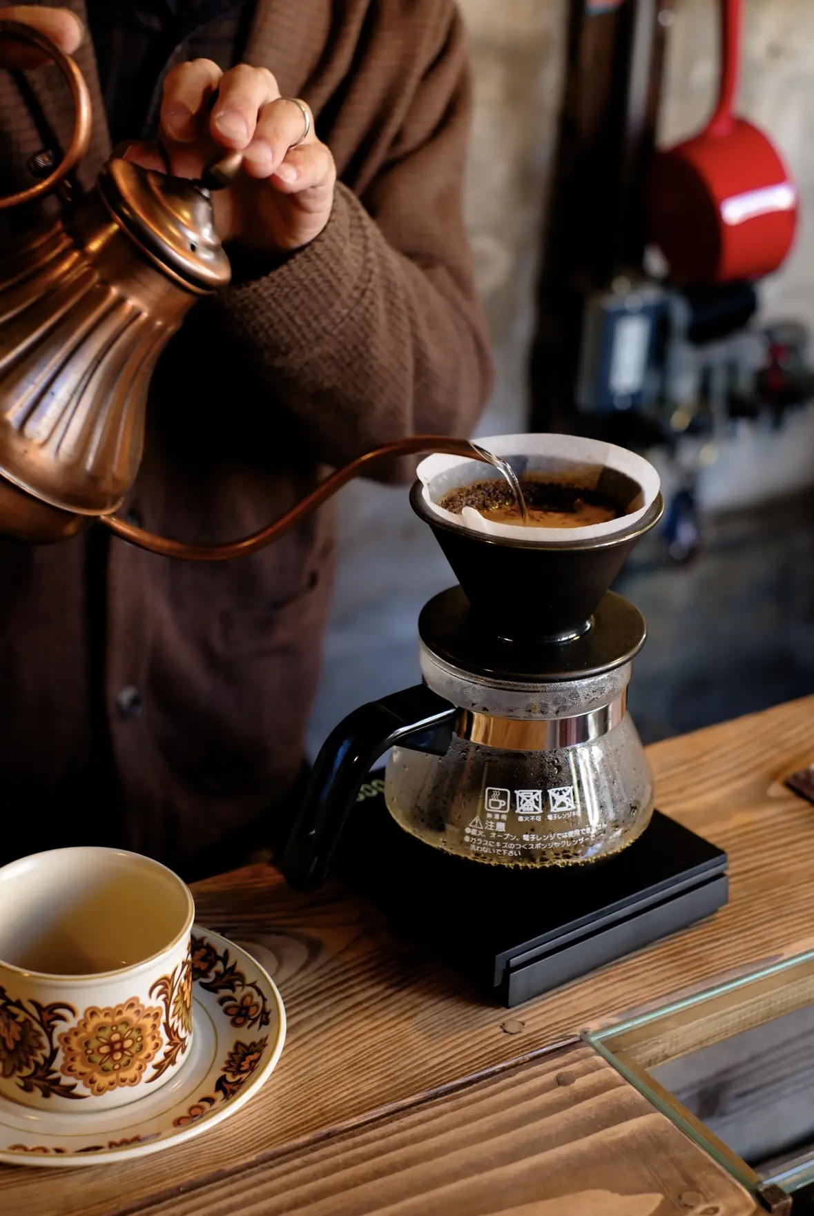 店内では、ハンドドリップで丁寧に淹れるコーヒーも楽しめます。