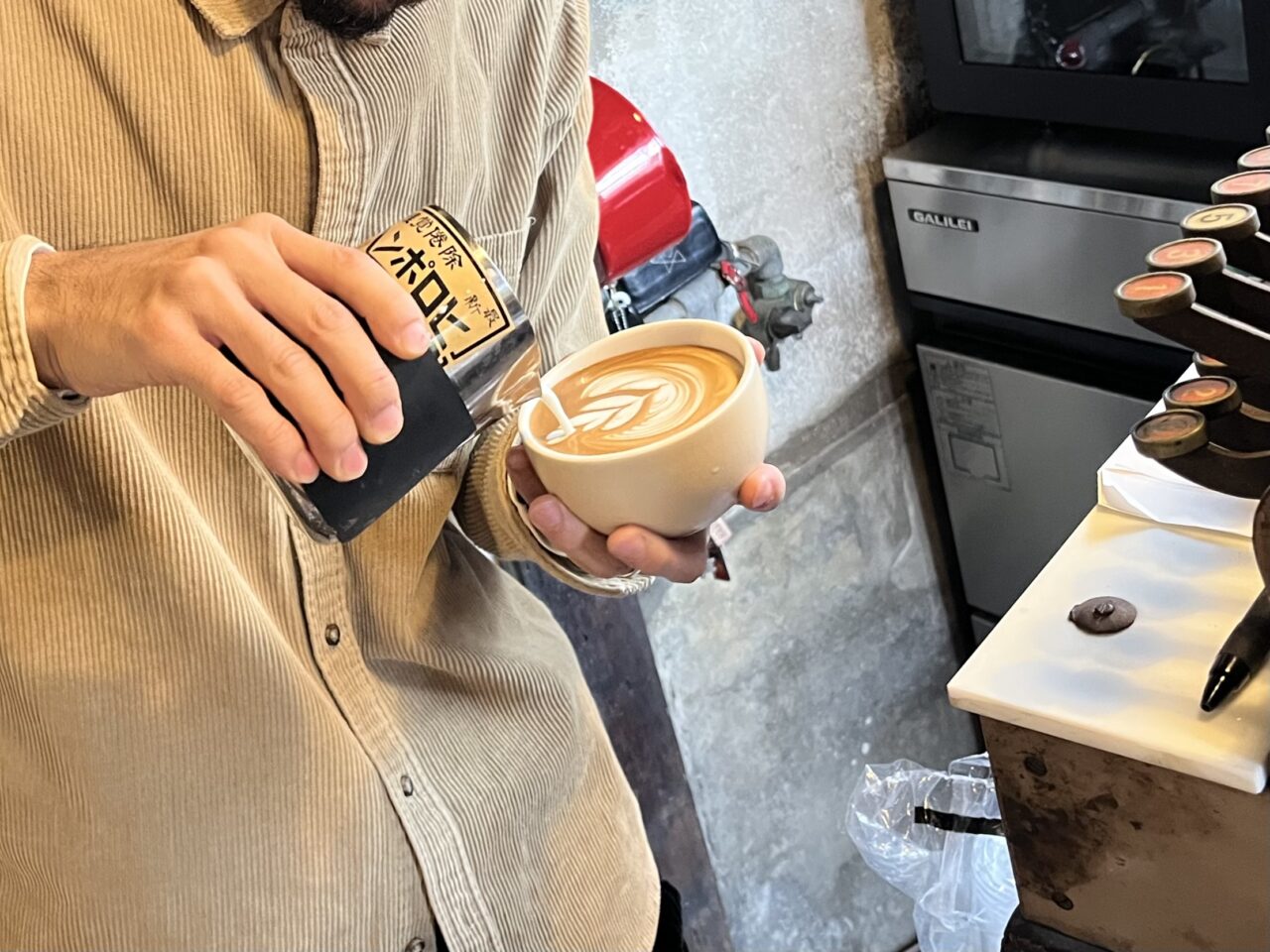 カフェラテを注文すると、目の前でラテアートを仕上げてくれました。