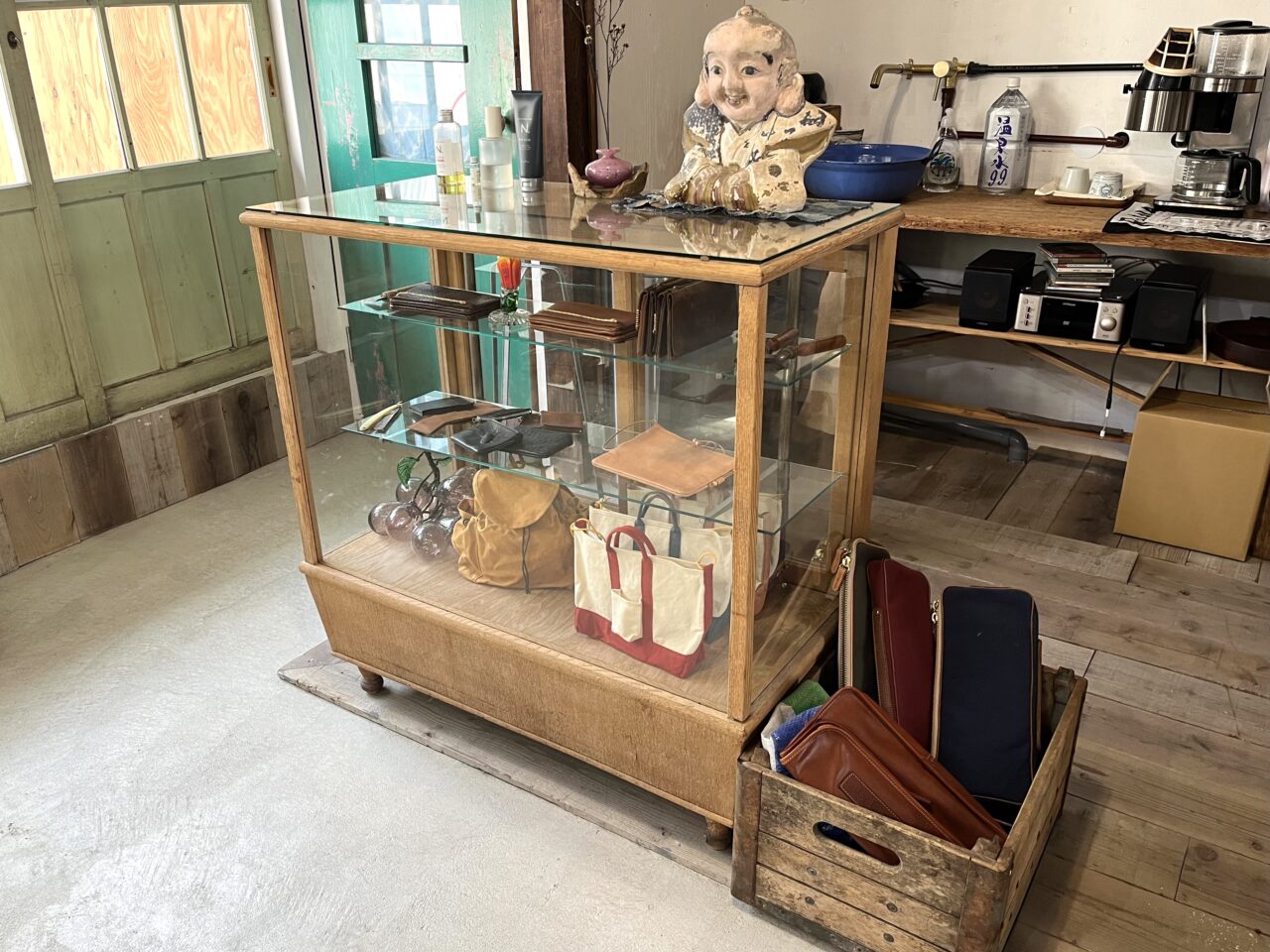 店内ではハンドメイドの鞄や革小物の販売も行われており、古民家の雰囲気に合う味わいのある製品が並んでいました。