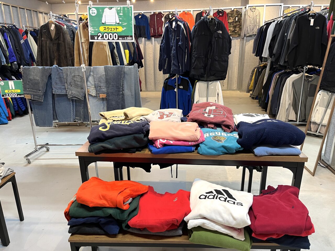 デニムやスウェットが2,000円(税込2,200円)均一で販売されているコーナーもあります。