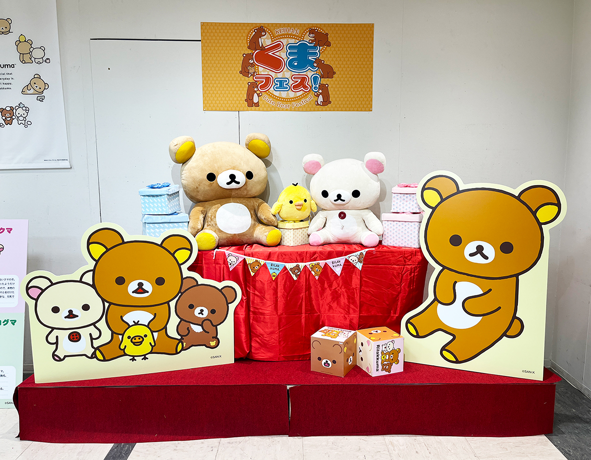 会場内では、“リラックマ”のぬいぐるみやキーホルダー、ポーチなど、さまざまなグッズが並んでいます。