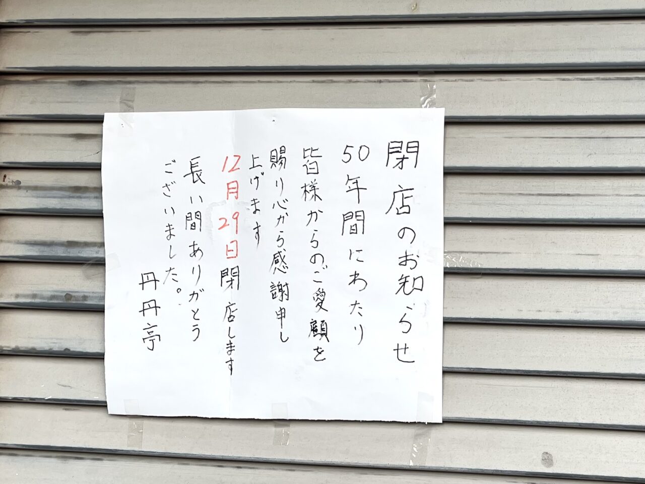 張り紙には、50年間にわたり営業されてきたことが記されており、あわせて、これまで長年にわたり利用してきた方々への感謝の言葉が綴られていました。