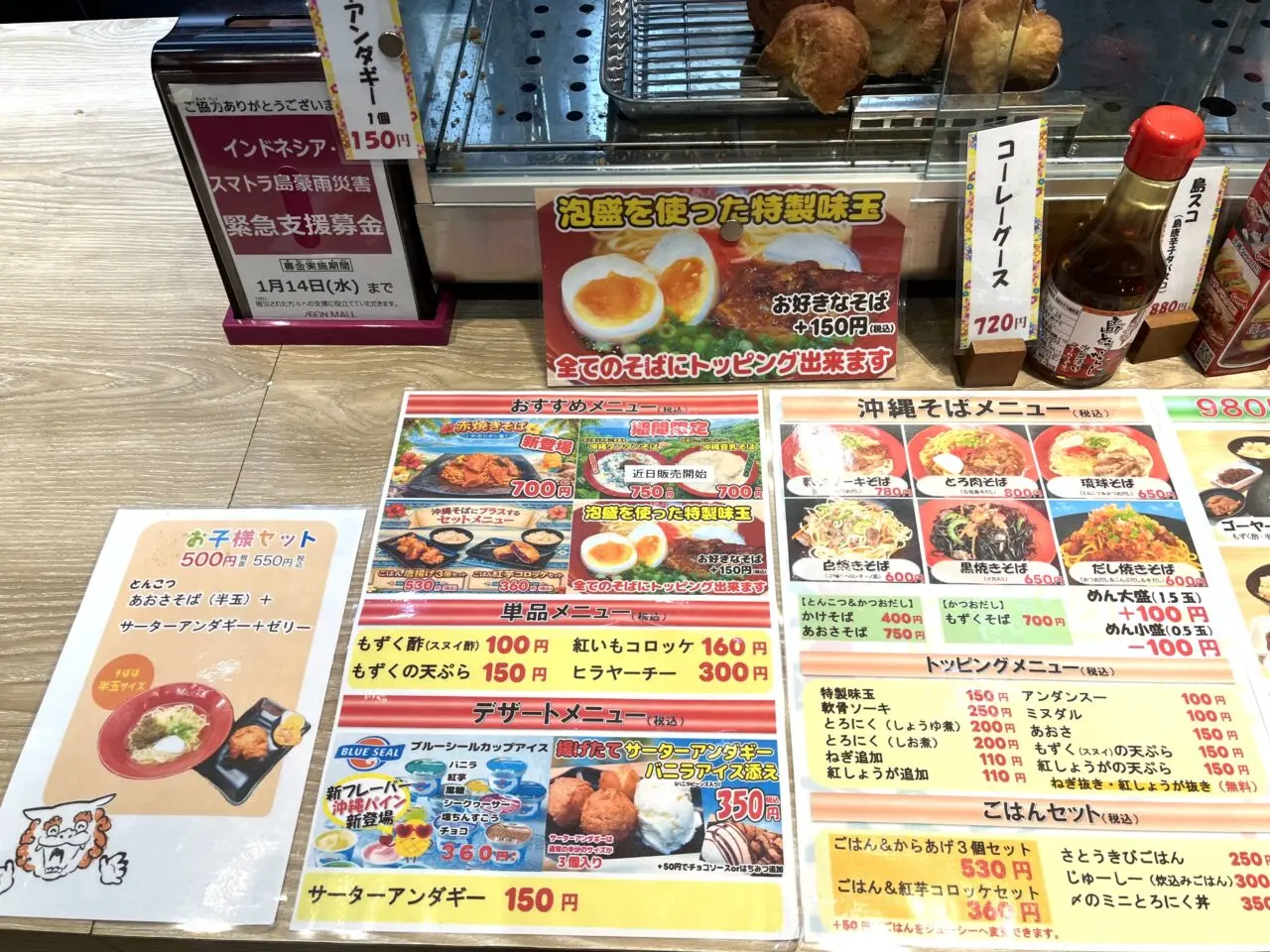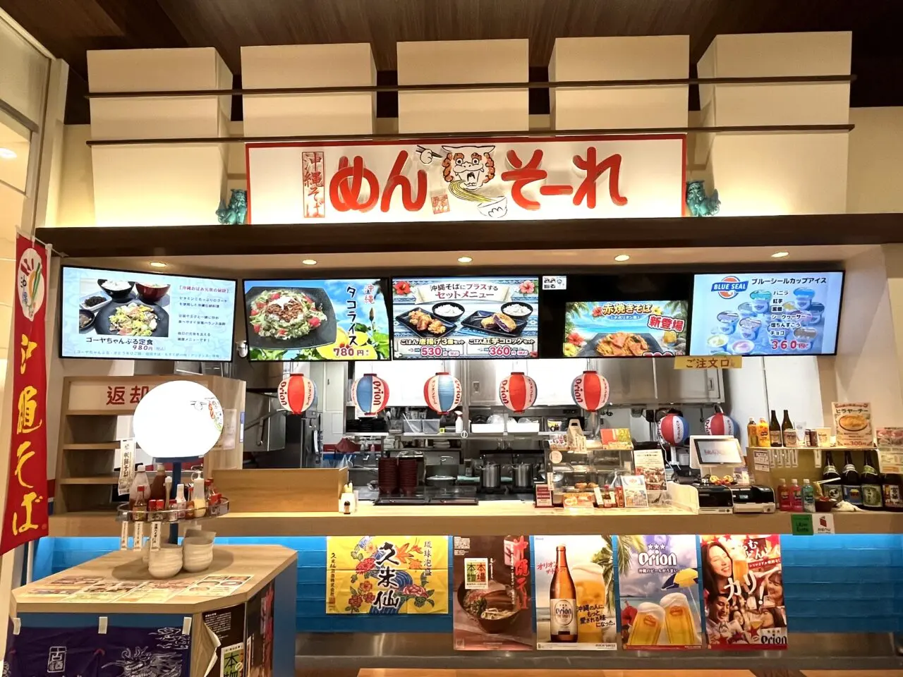 イオンモール大日2階フードコートにある「沖縄そば めんそーれ」では、沖縄そばをはじめとした沖縄フードが楽しめます。