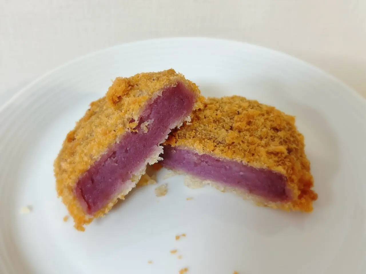 紅芋コロッケ(税込160円)は、紅芋ならではの色鮮やかな見た目が印象的です。ほのかに甘みがあり、おやつとしてはもちろん、夕飯の一品にも良さそうです。