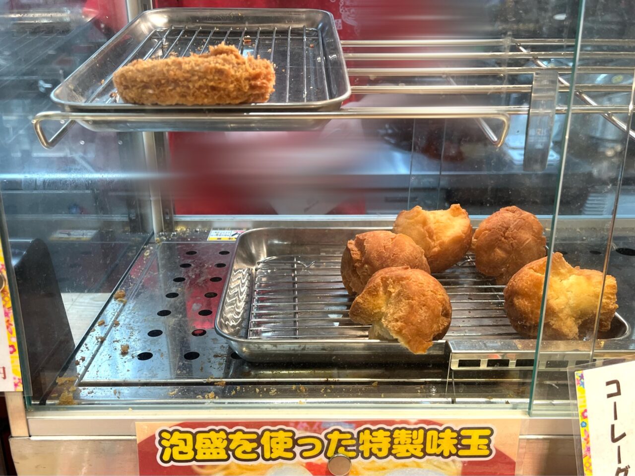 レジ横のショーケースには、保温された「紅芋コロッケ」や「サーターアンダギー」などが並んでいました。
