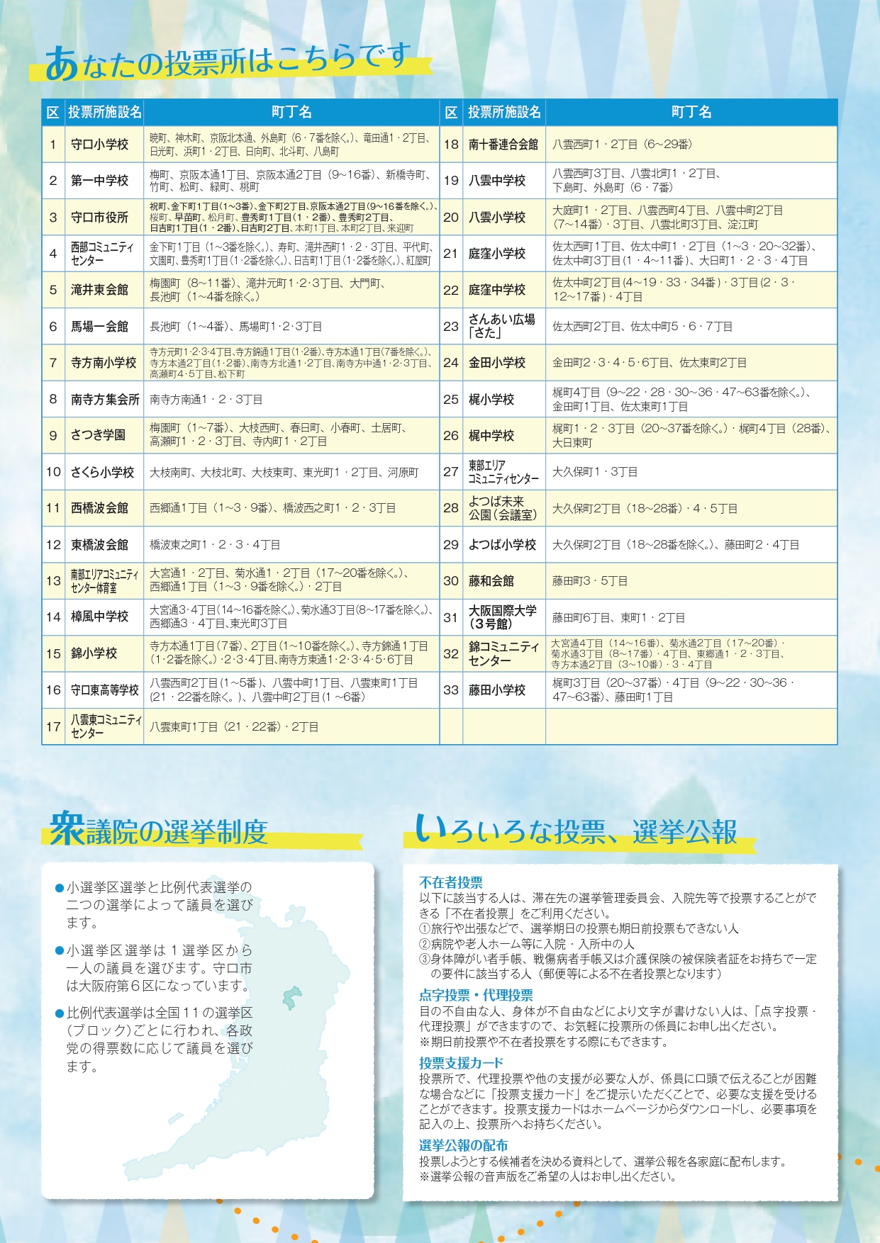 大阪府は、衆院選の「小選挙区」と「比例代表」と「最高裁判所裁判官の国民審査」と「大阪府知事選挙」の4つの投票があります。書き間違えのないように注意が必要ですね。