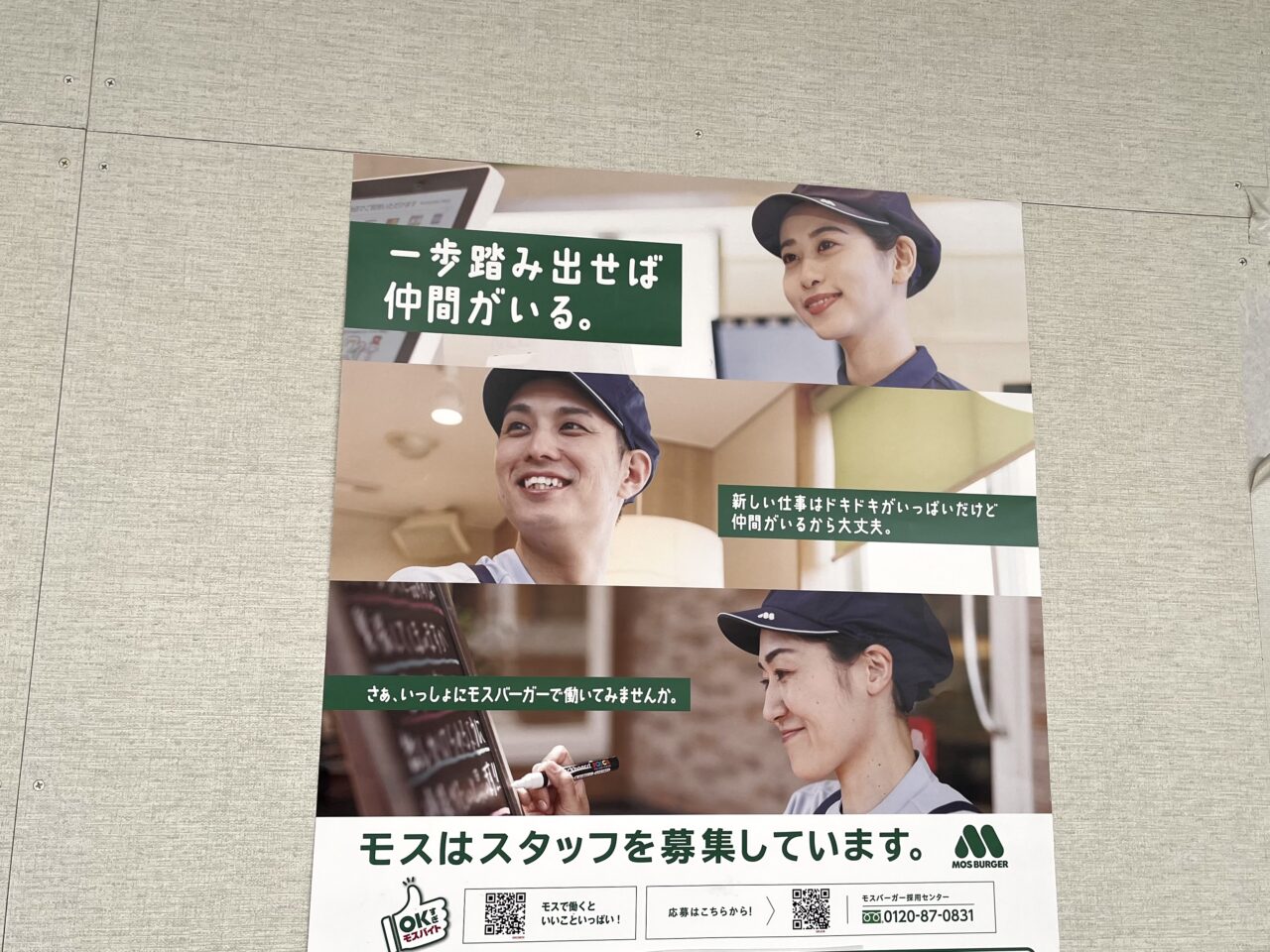 囲いの壁面には、モスバーガーのスタッフ募集ポスターが複数掲示されているのが確認できました。また、公式ホームページの店舗検索(新店オープン情報)ページにも、「モスバーガー京阪古川橋店」が大阪府で2月下旬オープン予定と案内されています。