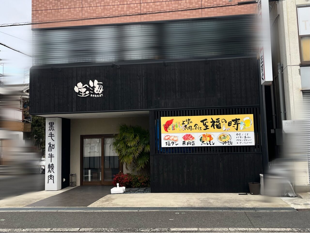府道21号線(八尾枚方線)沿いにある焼肉店「宝海(ほうかい)」が閉店していました。黒を基調とした外観が印象的で、道路を通る人の目にも留まりやすいお店でした。