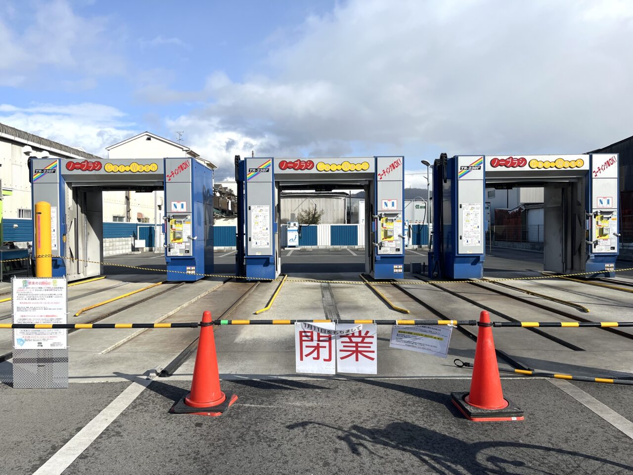 【門真市】四宮の工場などが点在するエリアにあったノーブラシ洗車場が閉業していました。