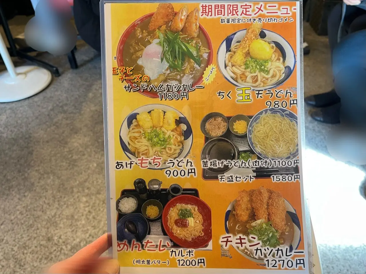 お昼に訪れたところ店内は満席で、席に案内されるまでの間にメニューを渡していただきました。こちらは期間限定メニューです。