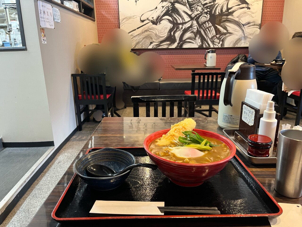席に案内していただき、注文した「温玉ちく天カレーうどん」が届きました。(麺の量は250gです)