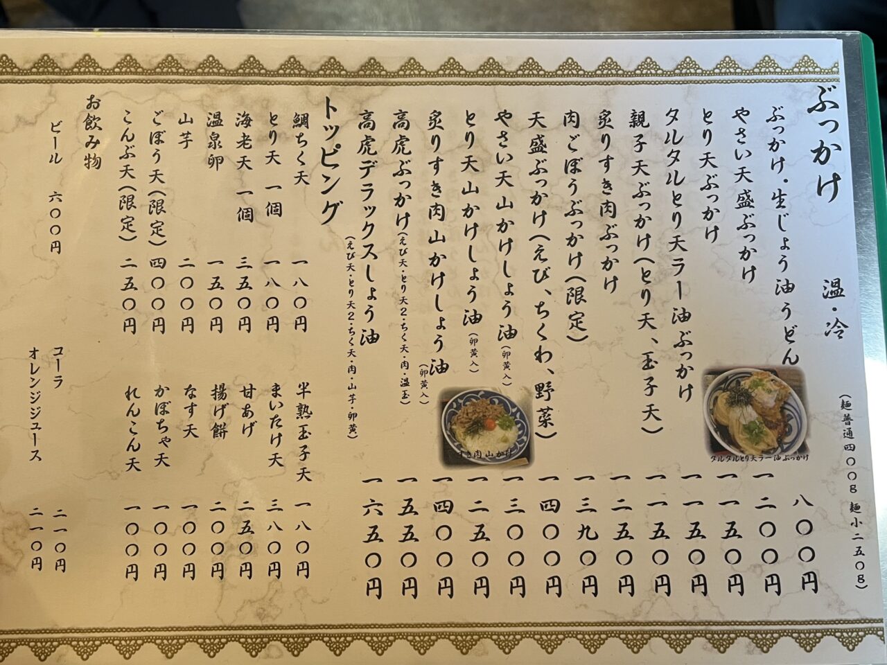 ぶっかけうどんの種類も豊富にそろっています。