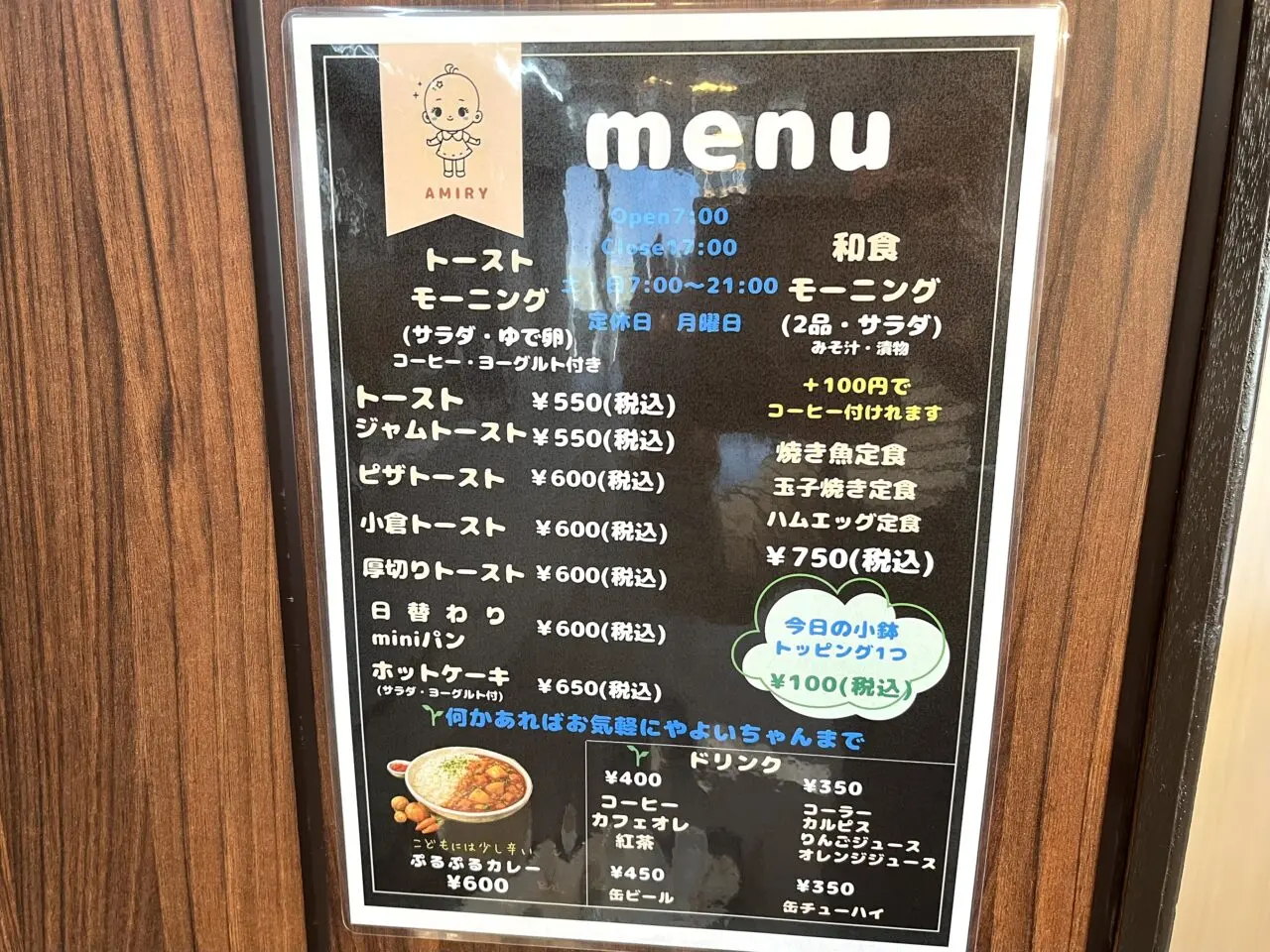 「ごはんや AMIRY」では、1日中モーニングが楽しめるため、朝ごはんはもちろん、ブランチや軽めのランチなど、さまざまな使い方ができそうです。気になる方は、足を運んでみてはいかがでしょうか。