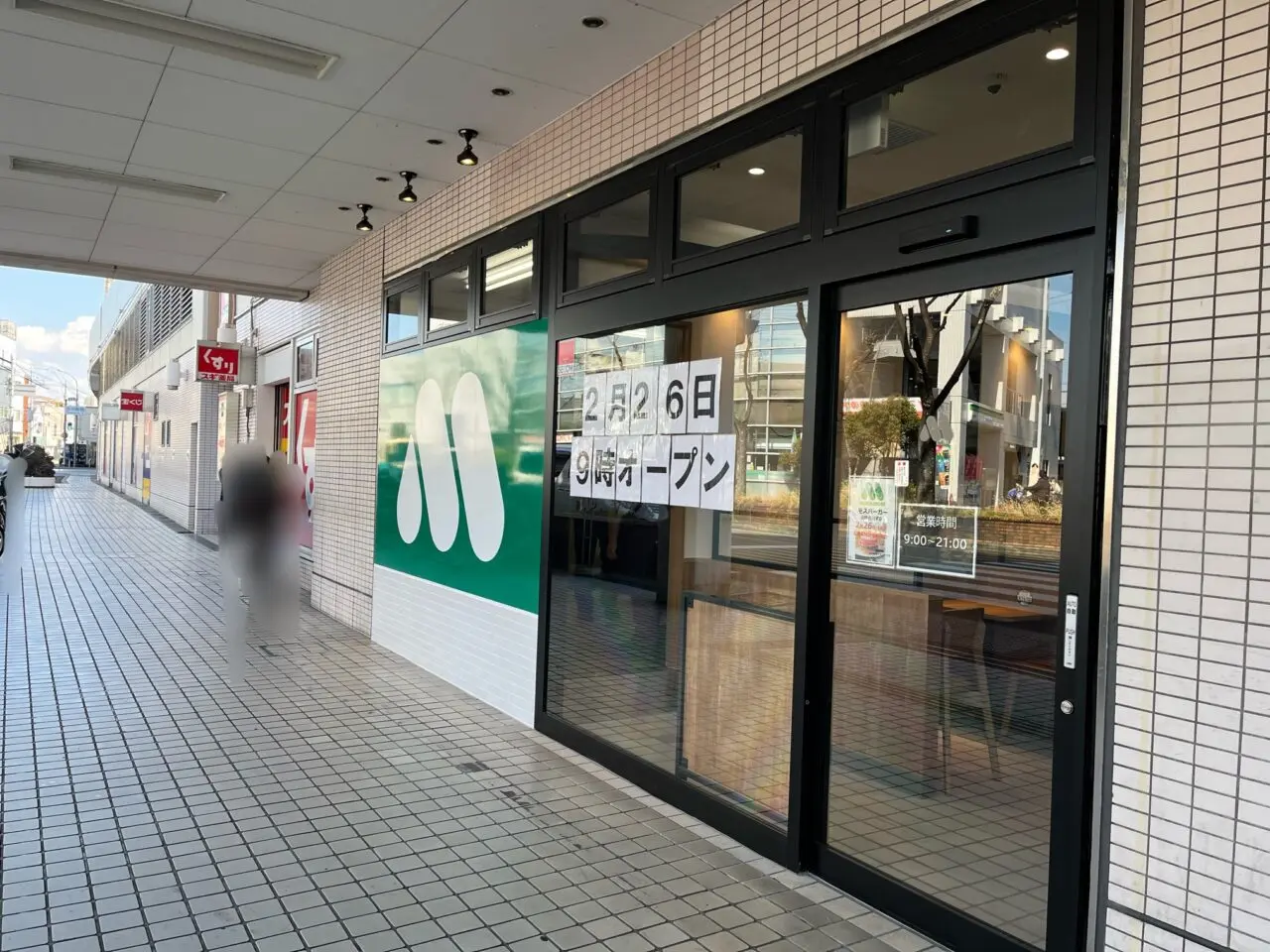 京阪電車・古川橋駅の高架下にある「ステーションモールコア古川橋 東館」に、「モスバーガー 京阪古川橋店」が2026年2月26日(木)9時にオープン予定と店頭に掲示がありました。