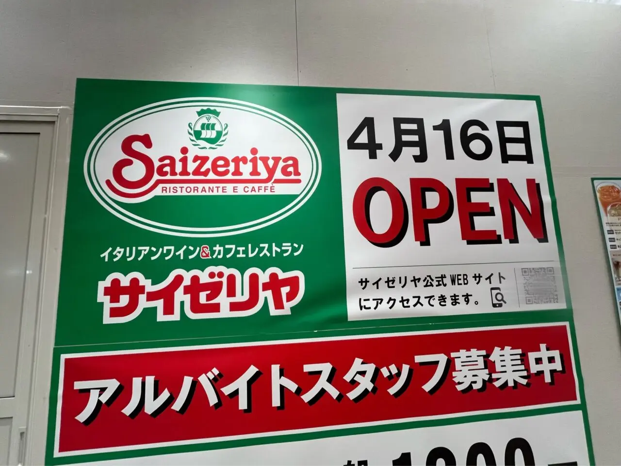 【門真市】そよら古川橋駅前のフードコートにサイゼリヤが4月16日オープン予定!現地に案内が出ていました。