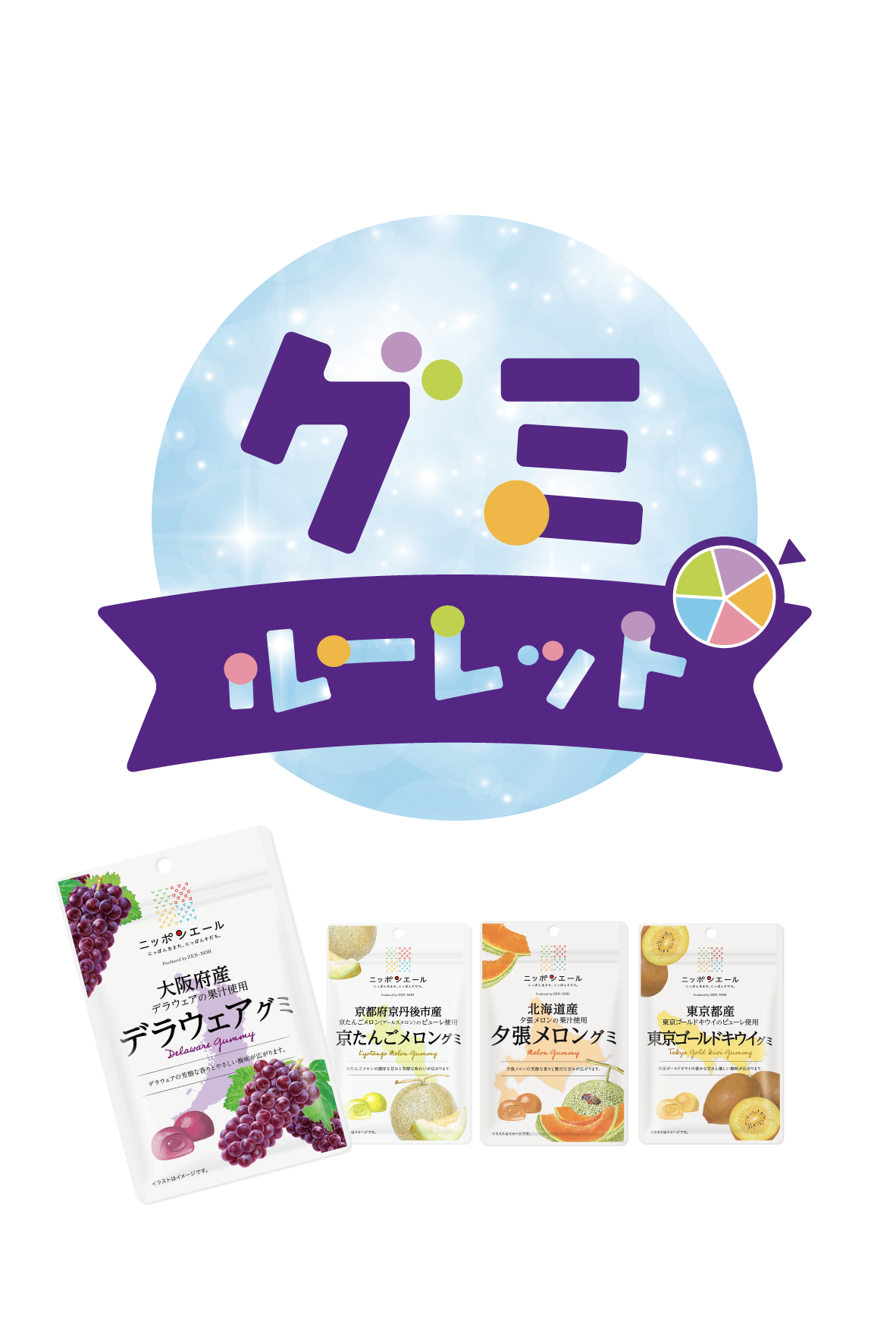 ルーレットで出た都道府県のご当地グミ・ニッポンエールグミがもらえる「全国ご当地グミルーレット」も行われます。さらに大当たりが出たら、「47都道府県コンプリートBOXグミ」がプレゼントされるそうです。