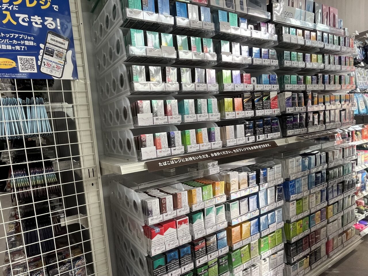 たばこは通常、店員さんに取ってもらって購入する形が一般的ですが、こちらの店舗ではお客さん自身が商品を手に取り、ミニストップアプリで年齢認証を行っている場合はセルフレジで会計できます。