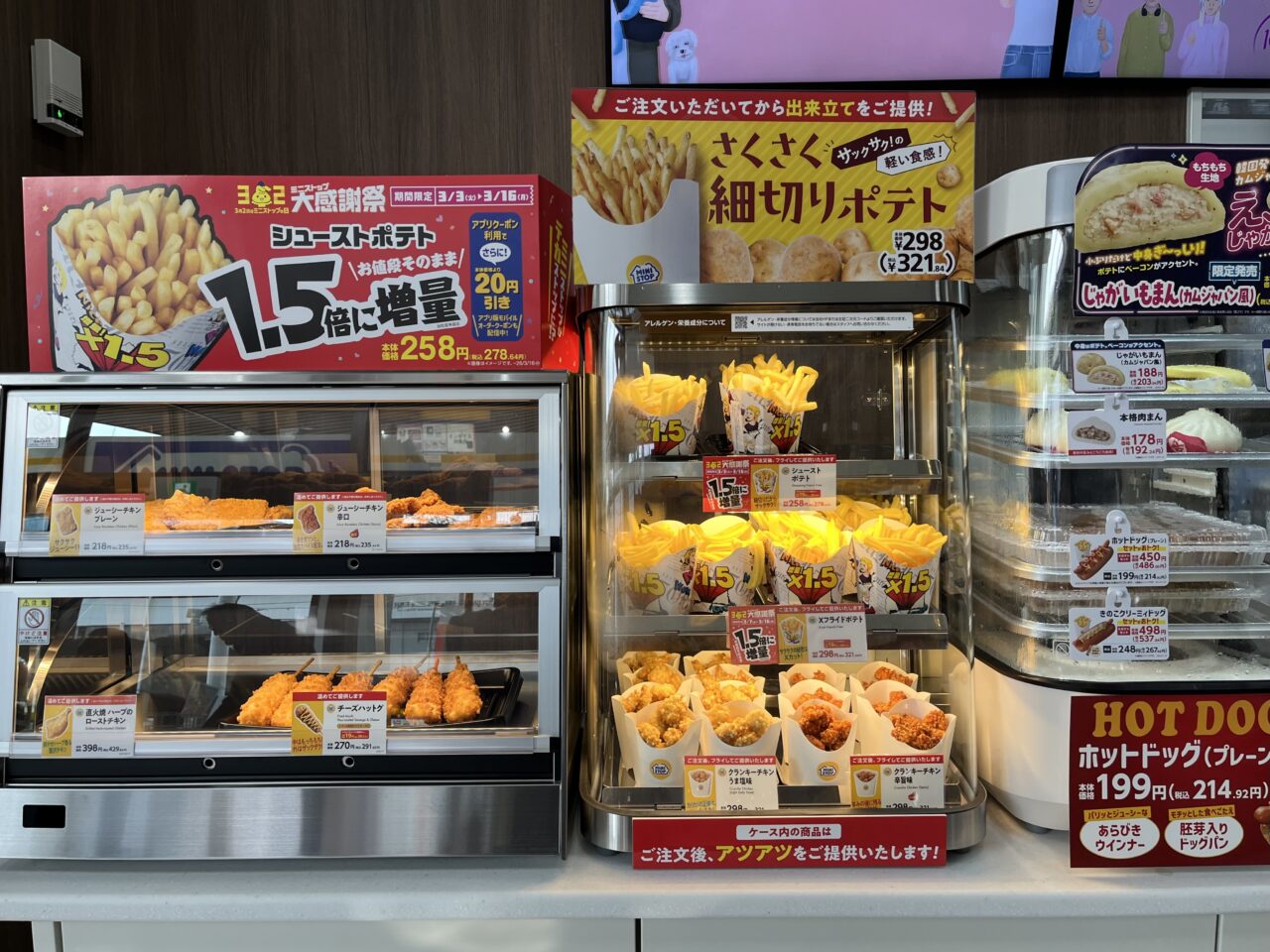 軽食にぴったりなホットドッグや、チキン・ポテトなどのファストフード類も揃っています。