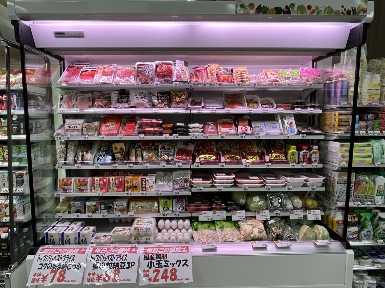 生鮮食品を扱う冷蔵コーナーもあり、スーパーのような品揃えが感じられました。