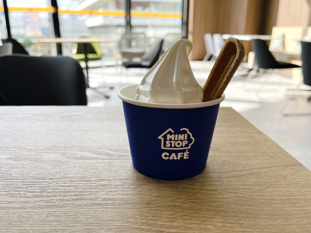 こちらは北海道ミルクソフト(カップ)です。スプーンがコーンでできているので、最後まで美味しく楽しめるのも嬉しいところです。