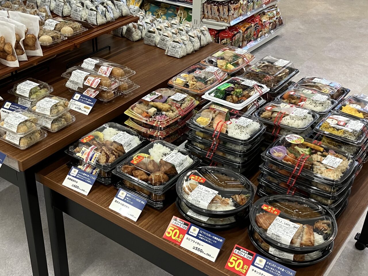 こちらには、店内調理のお弁当や惣菜、おにぎりなどが種類豊富に並んでいます。