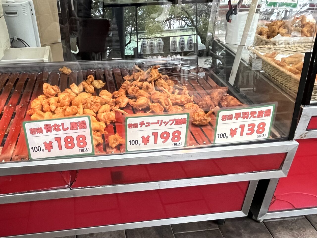 訪れた時間には、揚げ物コーナーに骨なし唐揚やチューリップ唐揚、手羽元唐揚など、揚げたての唐揚類が美味しそうに並んでいました。