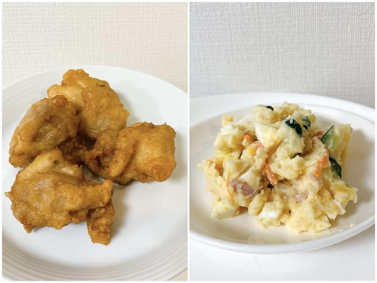 こちらは購入した「骨なし唐揚」と「ポテトサラダ」です。から揚げはやわらかくジューシーで、ポテトサラダにはきゅうりなどの具材もバランスよく入っていました。さまざまな料理にも合わせやすい一品です。