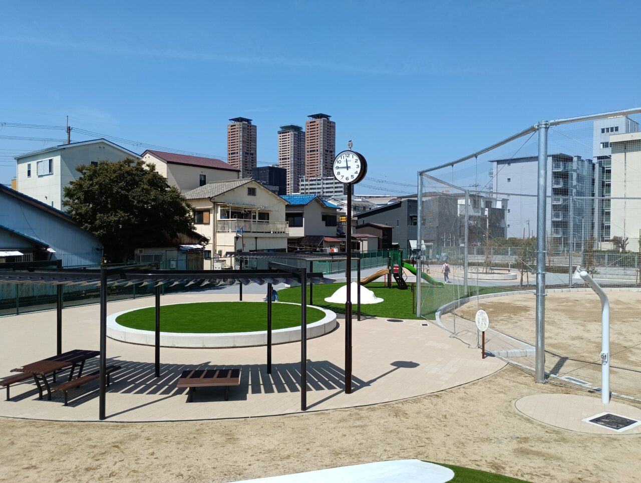 【門真市】浜町に「浜町みらい公園」がオープンしました。幼児用遊具や健康遊具などが整備され、多くの方々が利用できる公園です。