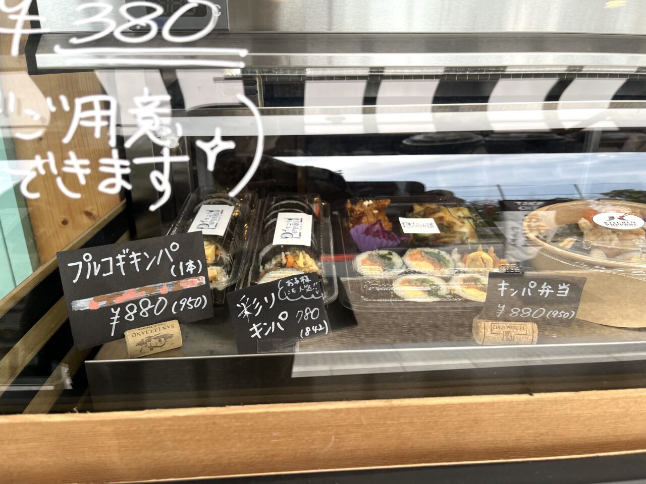 キンパなど韓国料理のお弁当もあり、彩りもよく、その日の気分に合わせて選べそうでした。大枝公園も近いため、テイクアウトして楽しむのにもよさそうです。