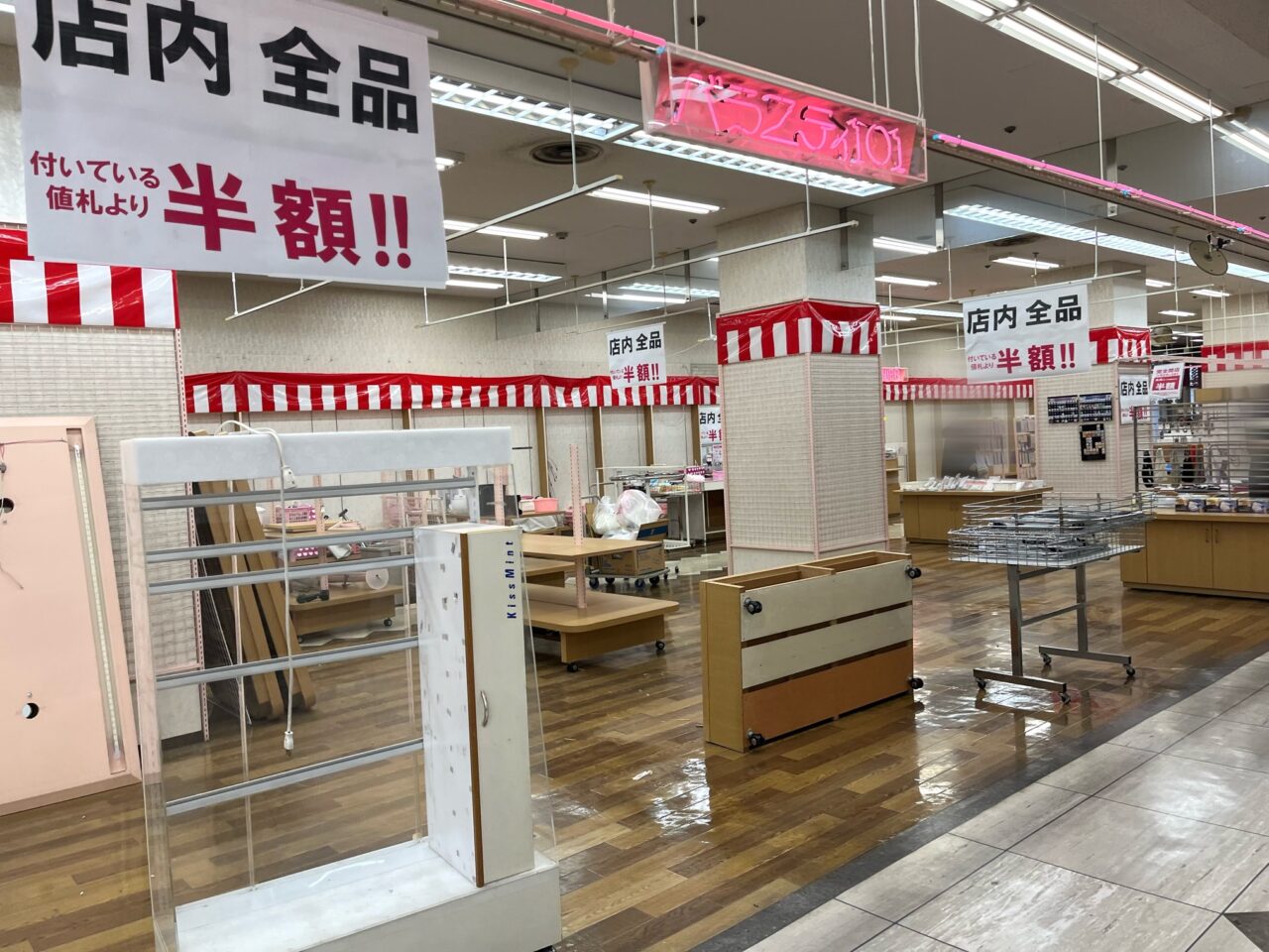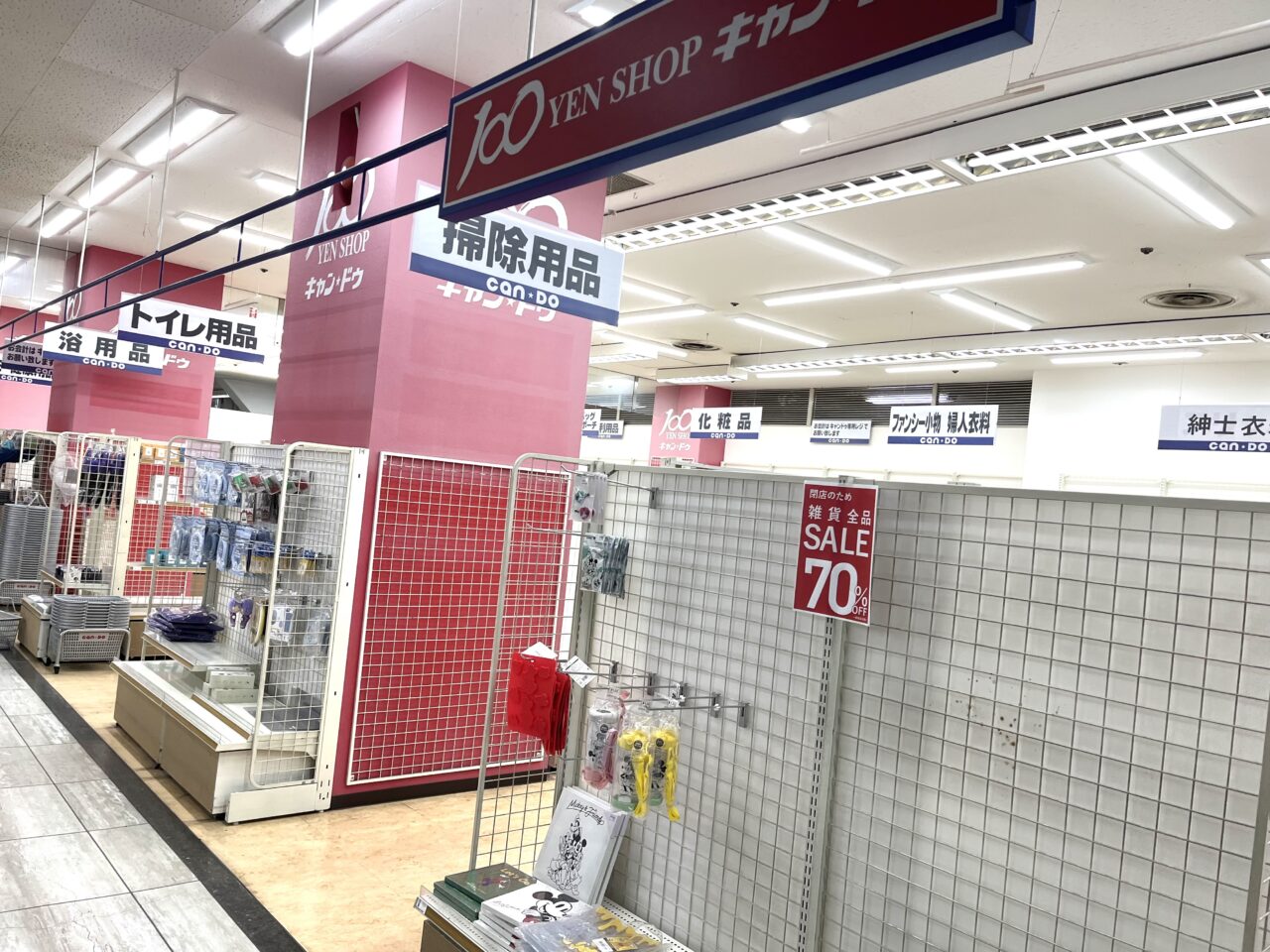 各売場では最後の売り尽くしが行われており、商品はかなり少なくなっていました。こちらは100円ショップの様子です。