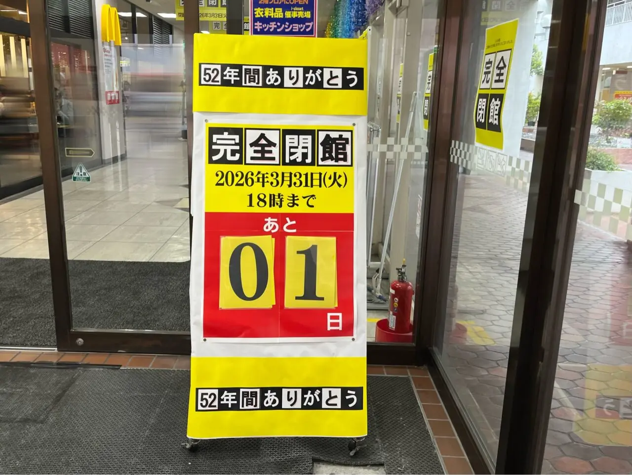今回の写真には写っていませんが、地下の食料品売り場でも同様に最後の販売が行われていました。最後の閉館時間の様子は確認できませんでしたが、日中にも多くの人が訪れ、写真を撮ったり館内を見て回ったりする様子が見られました。52年間という長い年月にわたって営業し、多くの人に親しまれてきた施設であったことが感じられました。