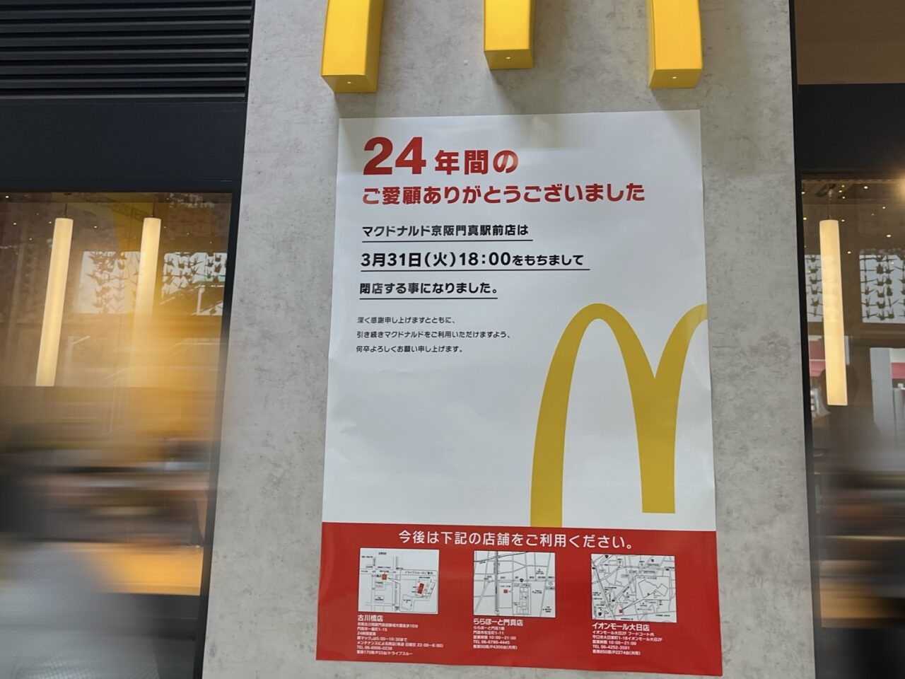 掲示には、24年間の営業への感謝の言葉と、近隣店舗の案内が記されていました。