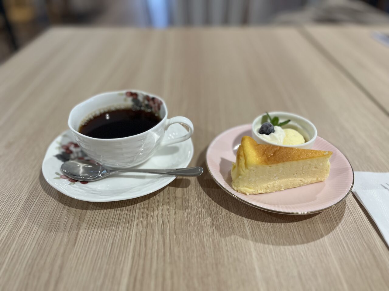 チーズケーキプレートのミニサイズとホットコーヒーを注文しました。ゆったりといただくことができました。