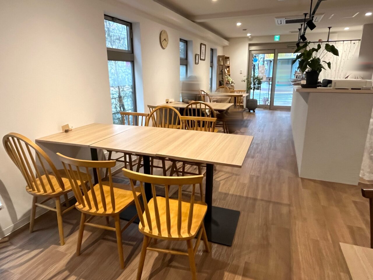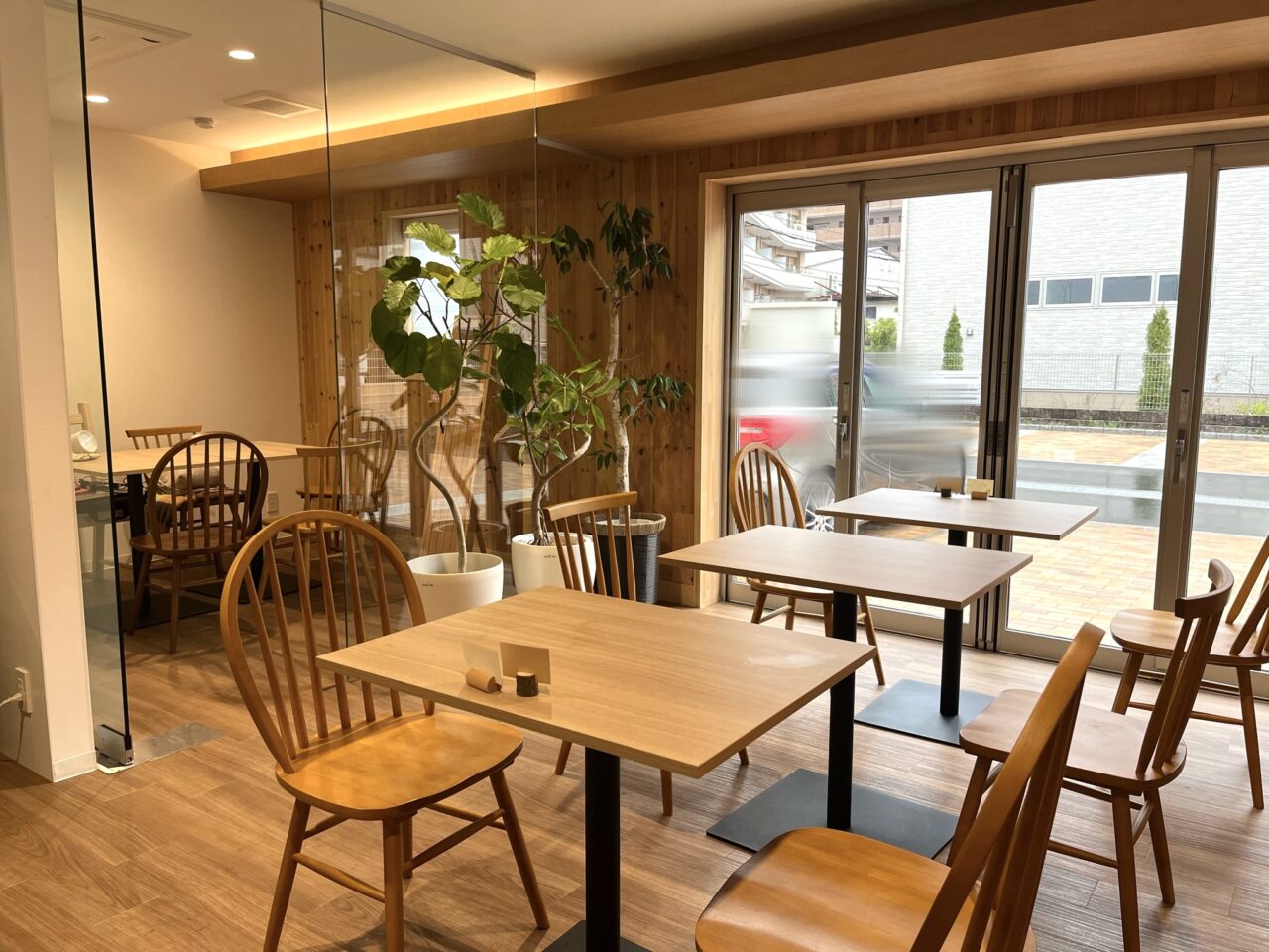 大きな窓から光が入り、開放感も感じられます。テーブル席が並び、ゆったりと過ごせそうな印象でした。