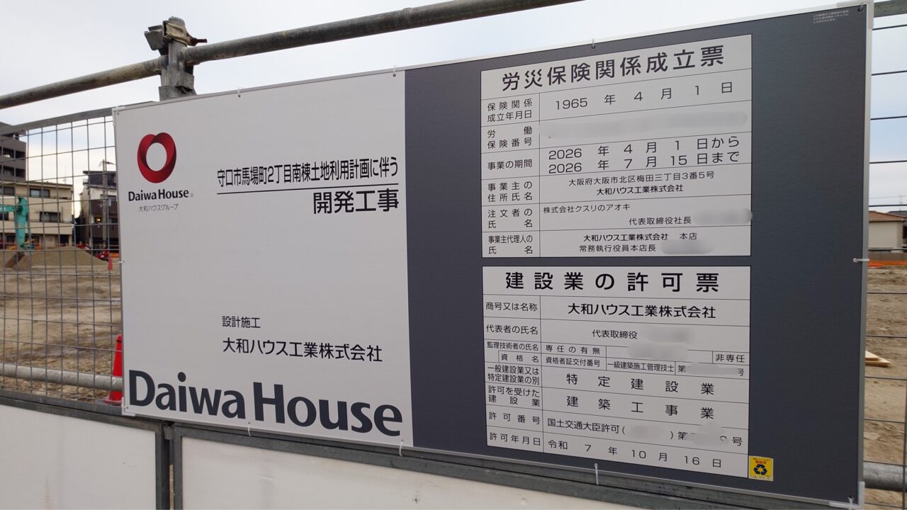 【守口市】大阪国際滝井高等学校跡地で店舗工事に関する掲示を確認しました。