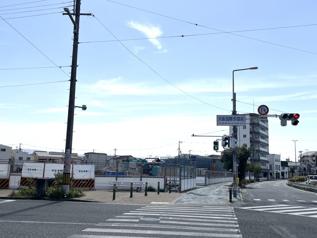 馬場町にある、かつて大阪国際滝井高等学校があった場所で、工事に関する看板が掲示されていました。