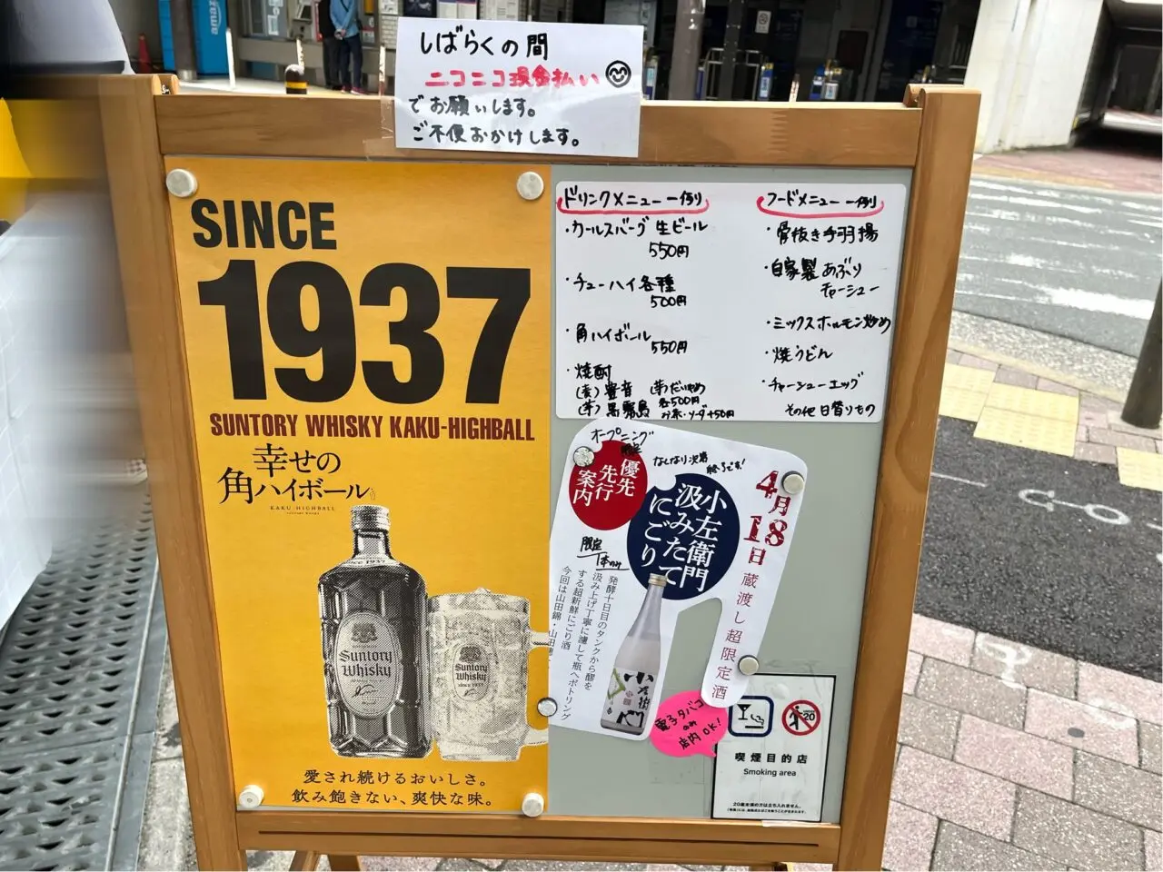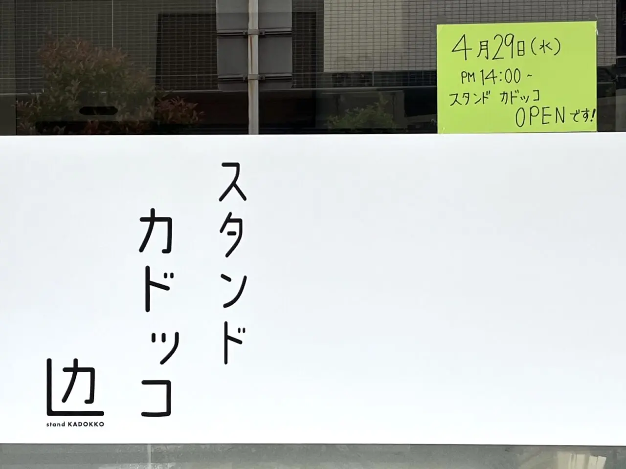 オープン日に現地を訪れたところ、店頭には「4月29日(水)14時にオープン」の案内の貼り紙が掲示されていました。開店準備のお忙しい時間帯でしたが、店主さんが少しお話を聞かせてくださいました。こちらのお店は、女性の店主さんが営む、立ち飲みスタイルのお店だそうです。