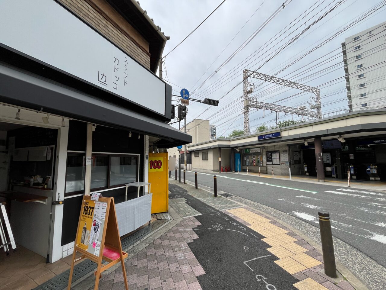 京阪電車・土居駅改札前に、立ち飲みスタイルのお店「スタンド カドッコ」が2026年4月29日(水)にオープンしました。複数の読者の方から「新しいお店がオープンするのでは」と、情報提供をいただいていた場所です。